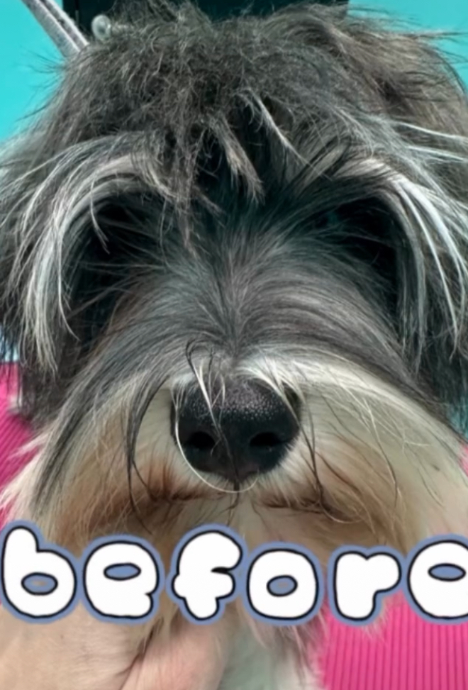 すっかり伸びた毛をスッキリとカット☆.。.:*・